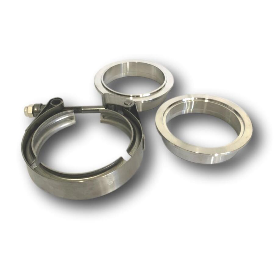 VBAND 3" STAINLESS STEEL LIPPED FLANGE & QUICK RELEASE CLAMP SET WITH A PLATED SELF LOCKING NUT